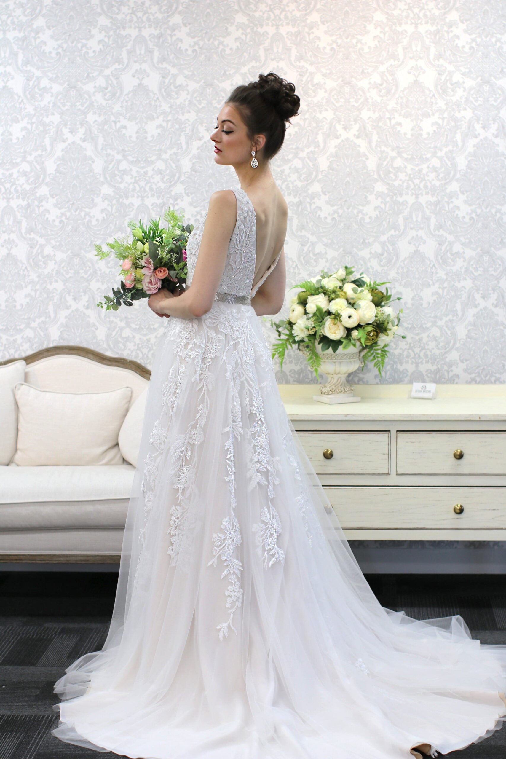 Our wedding dresses are for online viewing only and are available for purchase exclusively in-store at our Deer Park showroom.