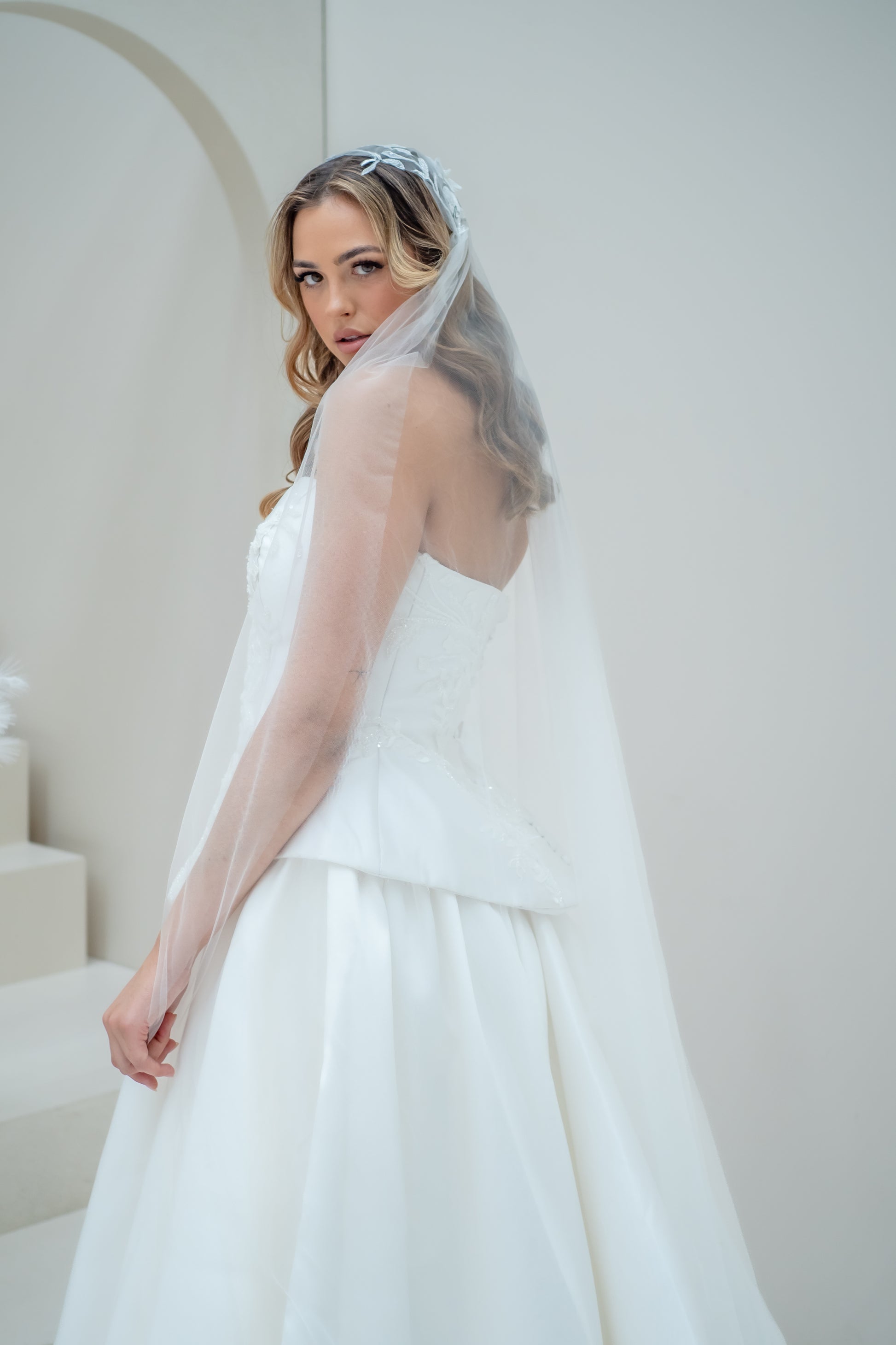 PERFECT FOR Brides seeking a romantic and timeless bridal gown with elegant detailing and soft movement.