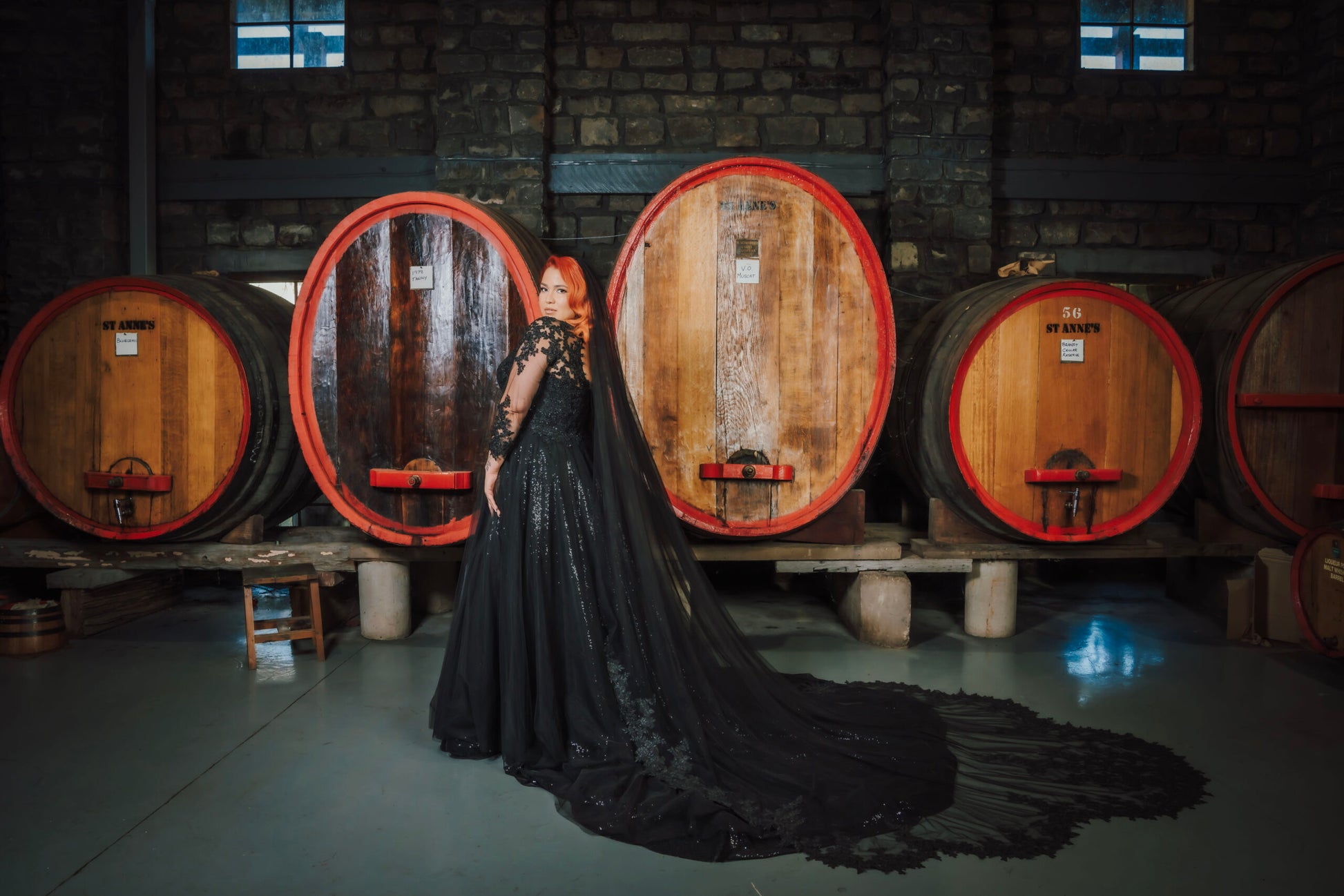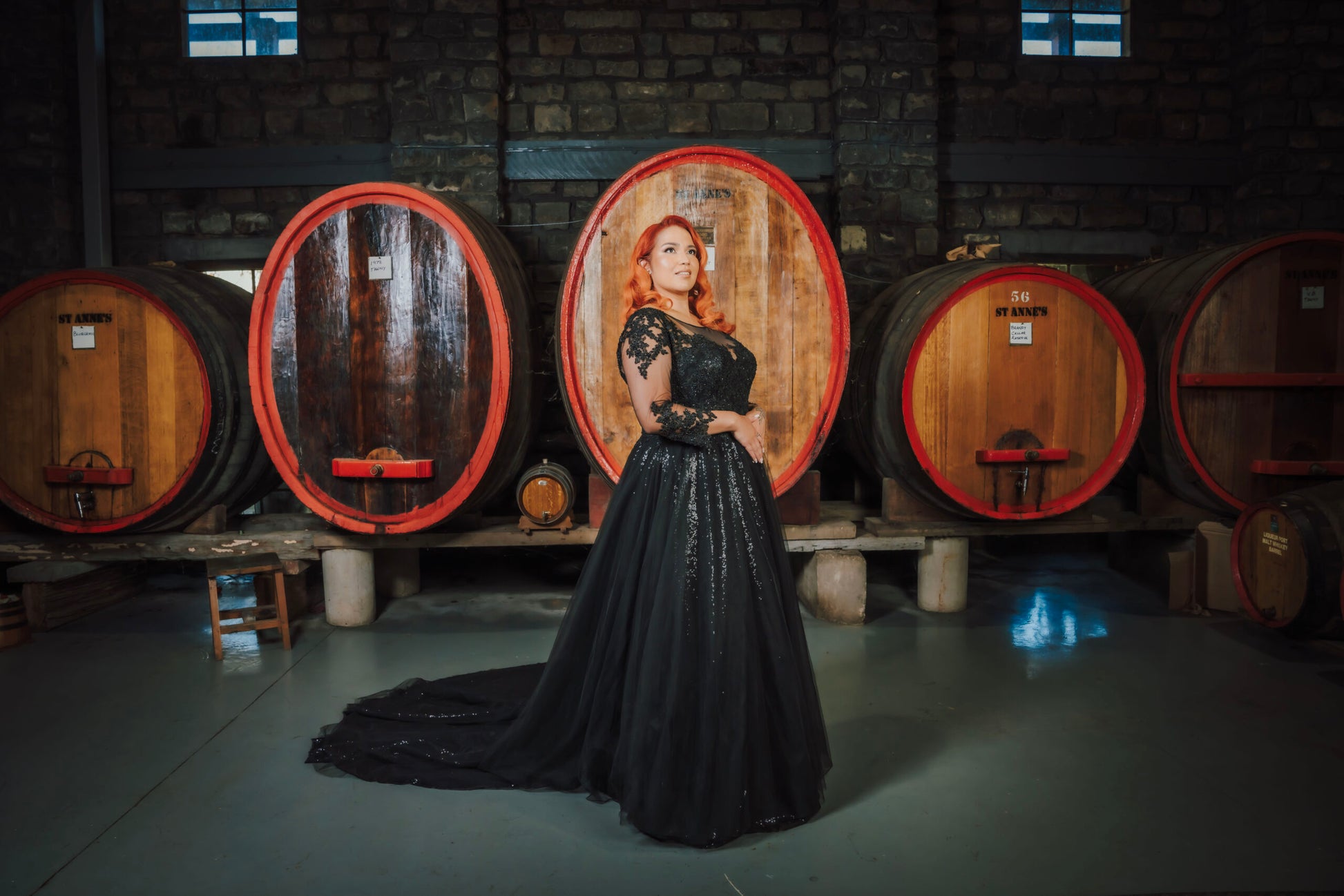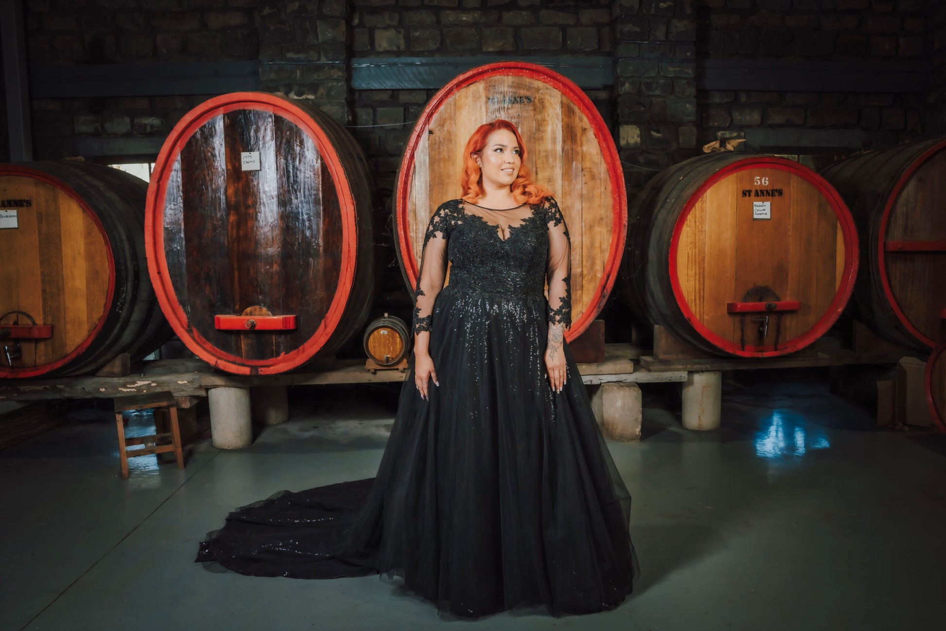 Jullia Bridal introduces "Anabella," a captivating black princess wedding dress, ideal for brides seeking a unique and dramatic look. This gown combines gothic charm with classic elegance, featuring a luxurious sequined fabric that sparkles under the lights, ensuring the bride stands out on her special day. The delicate lace sleeves and a flattering V-neckline enhance its romantic allure, while the sweeping train adds a regal touch. Designed to cater to plus-size brides, "Anabella" offers a comfortable fit without sacrificing style, making it a standout choice for a memorable wedding. Perfect for evening ceremonies or themed weddings, this gown is a symbol of sophistication and individuality.
