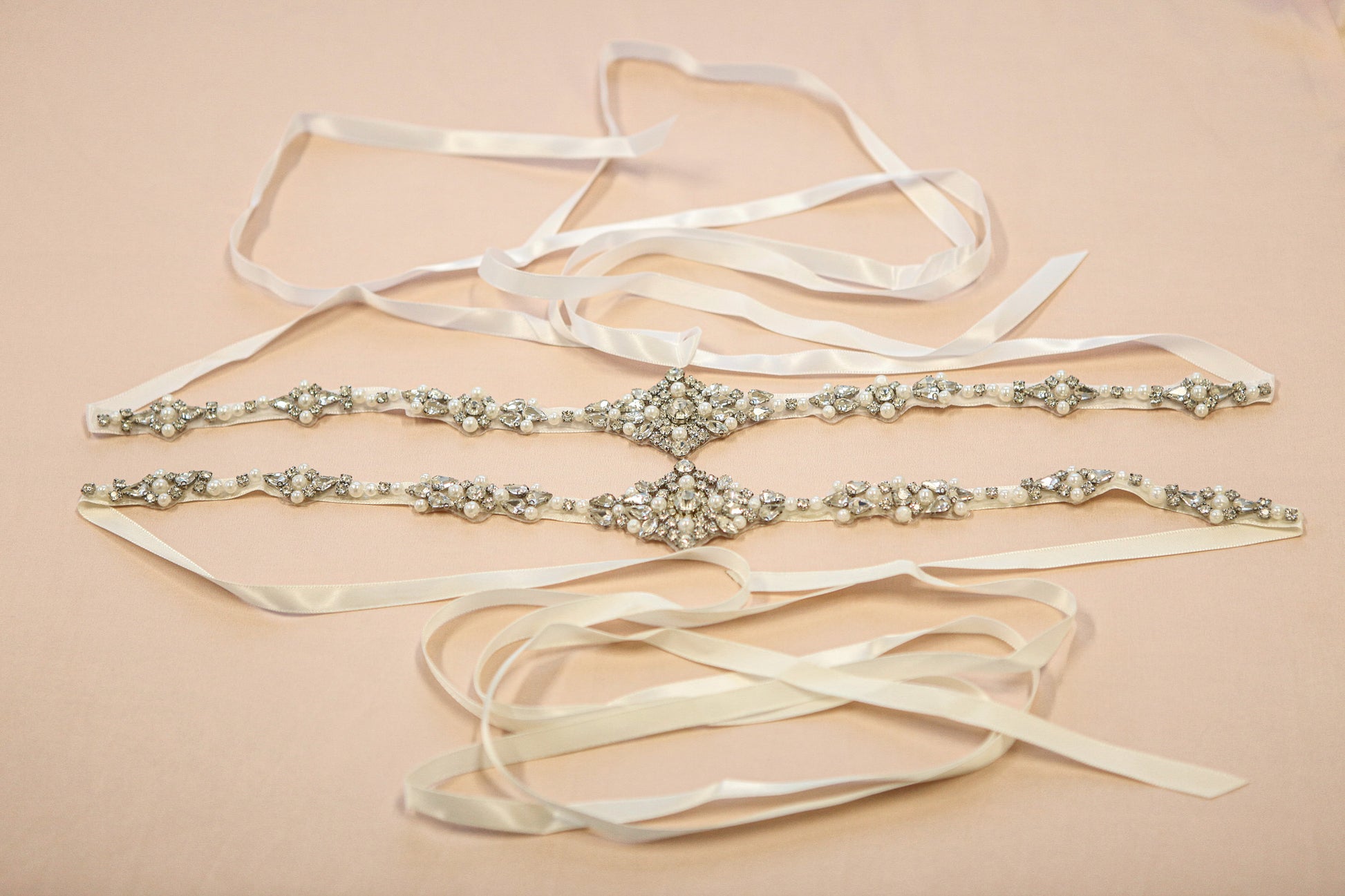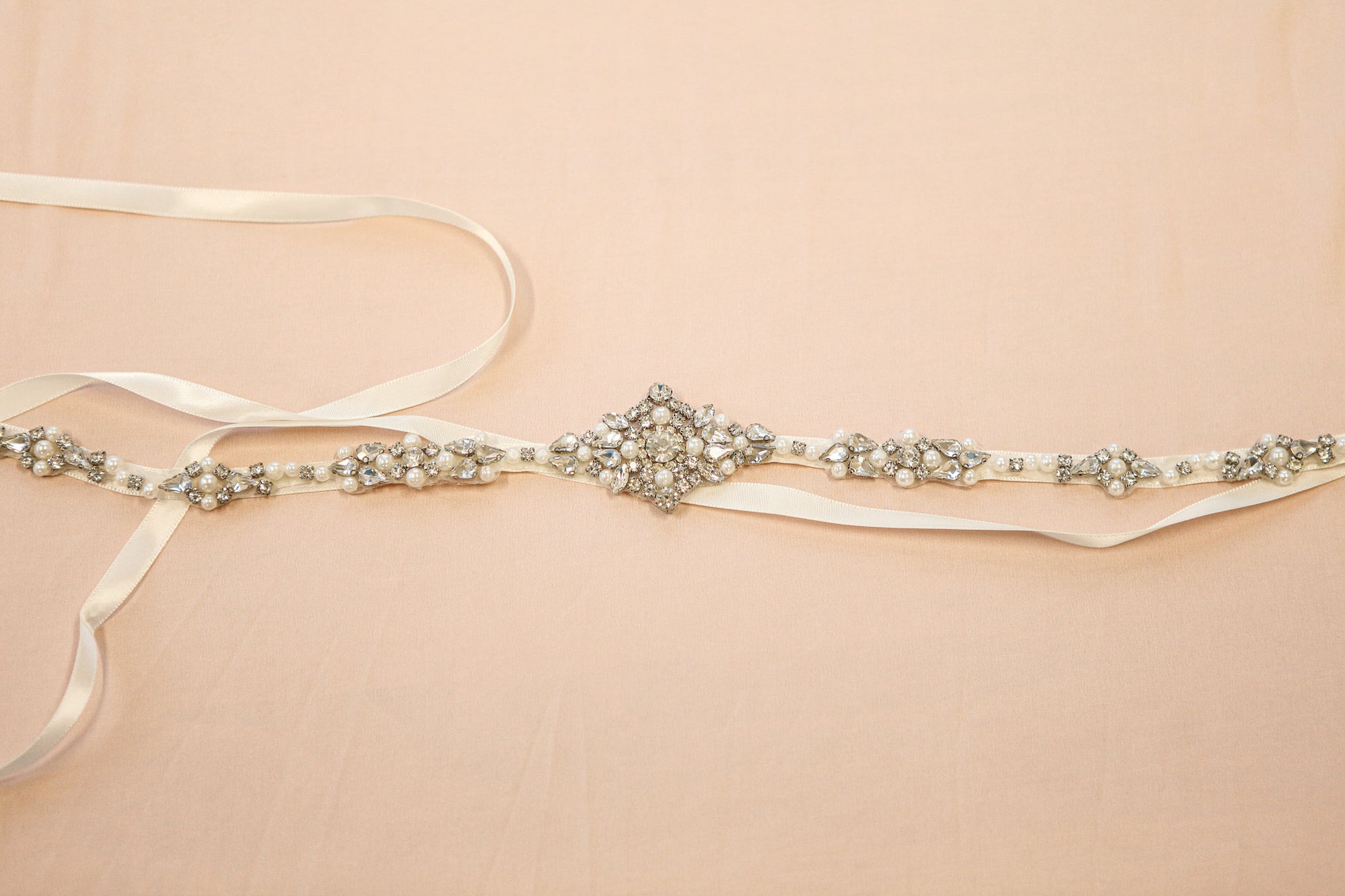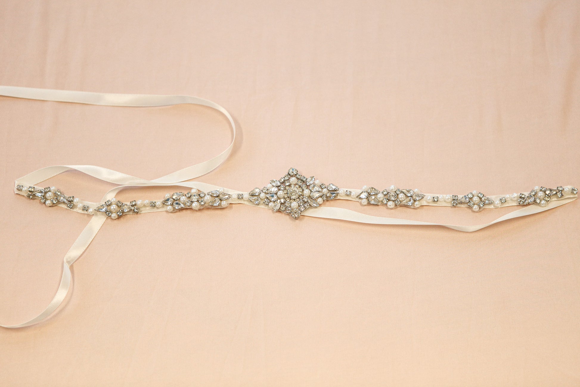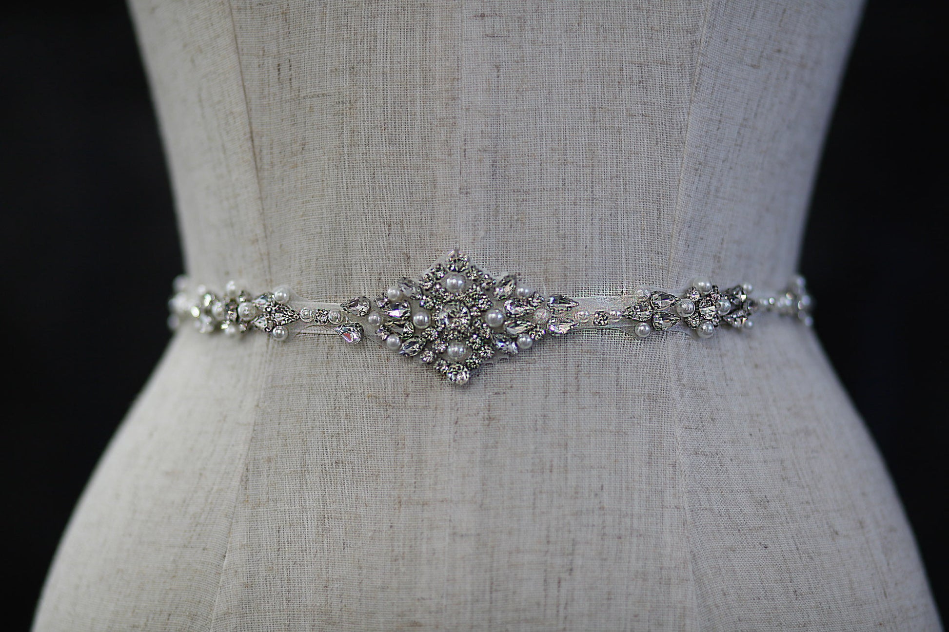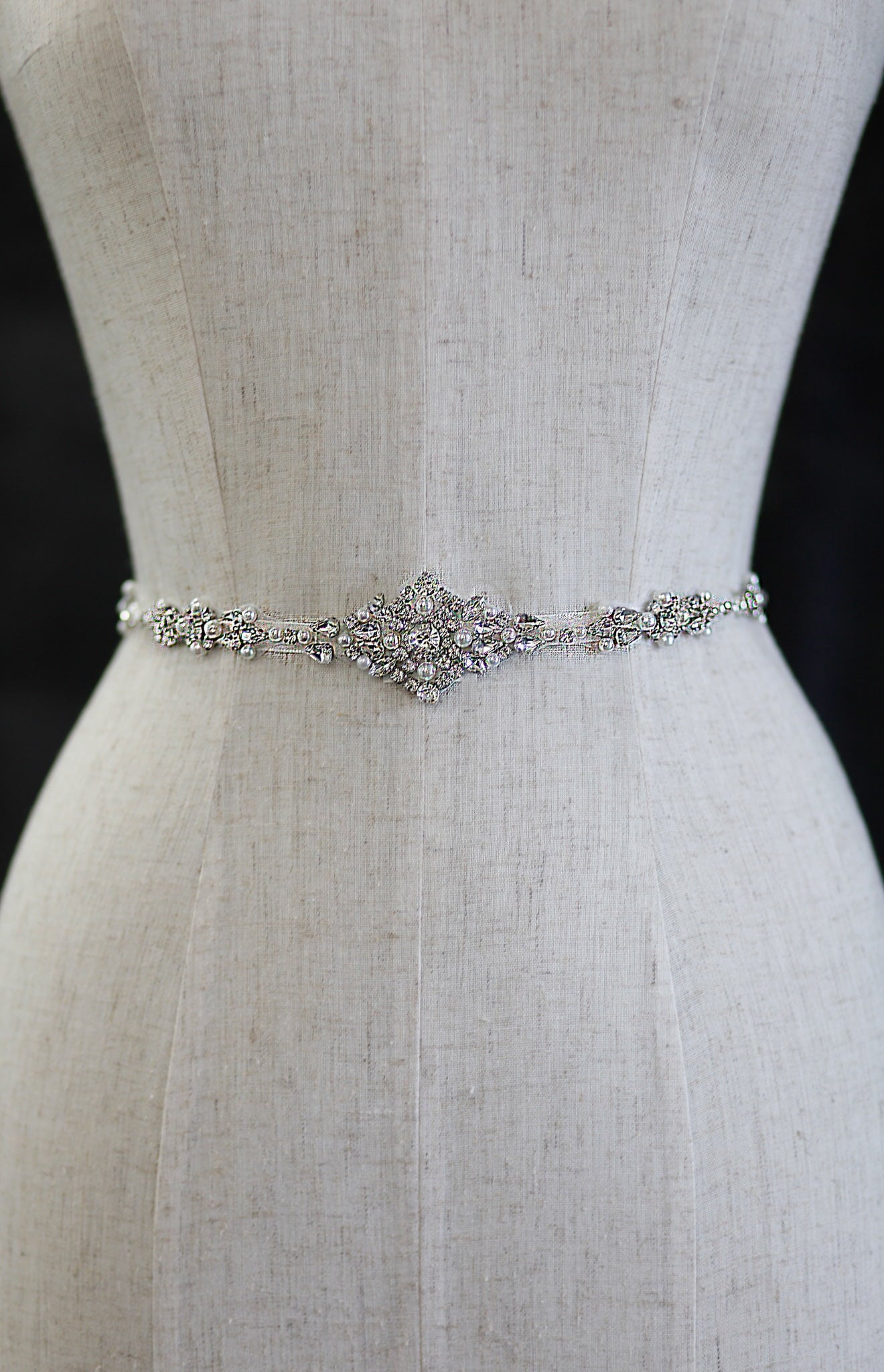 This gorgeous AS319 bridal belt is perfect to add a hint of sparkle to your wedding dress and accentuate your waist line. This belt is made onto quality satin ribbon and finished with a beautiful rhinestone and pearl applique.