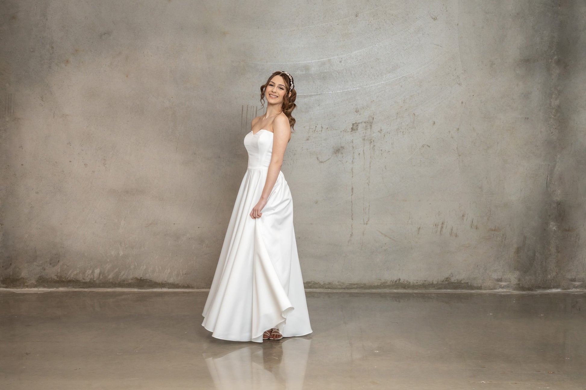 The Lavinia debutante dress is a classic strapless gown with a sweetheart neckline, designed from luxurious satin fabric. The corset back provides a perfect fit, enhancing the dress’s elegant silhouette. Available in Off White and Pure White, this timeless gown is ideal for debutantes seeking simplicity and sophistication. Custom sizing and rush order options ensure a flawless fit for any formal occasion.