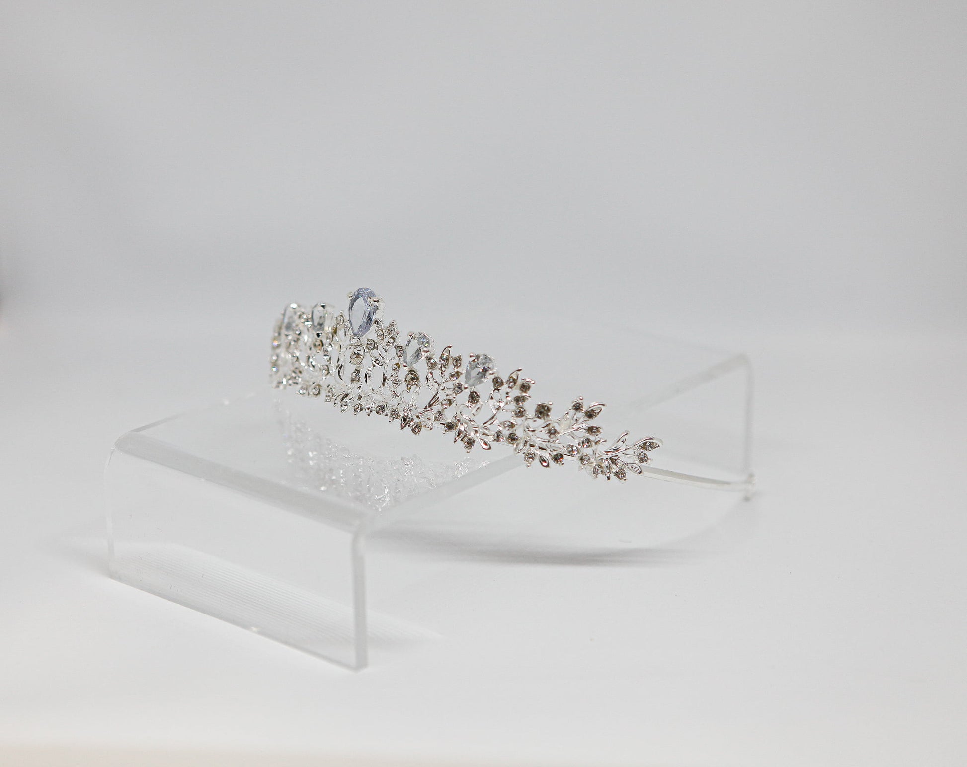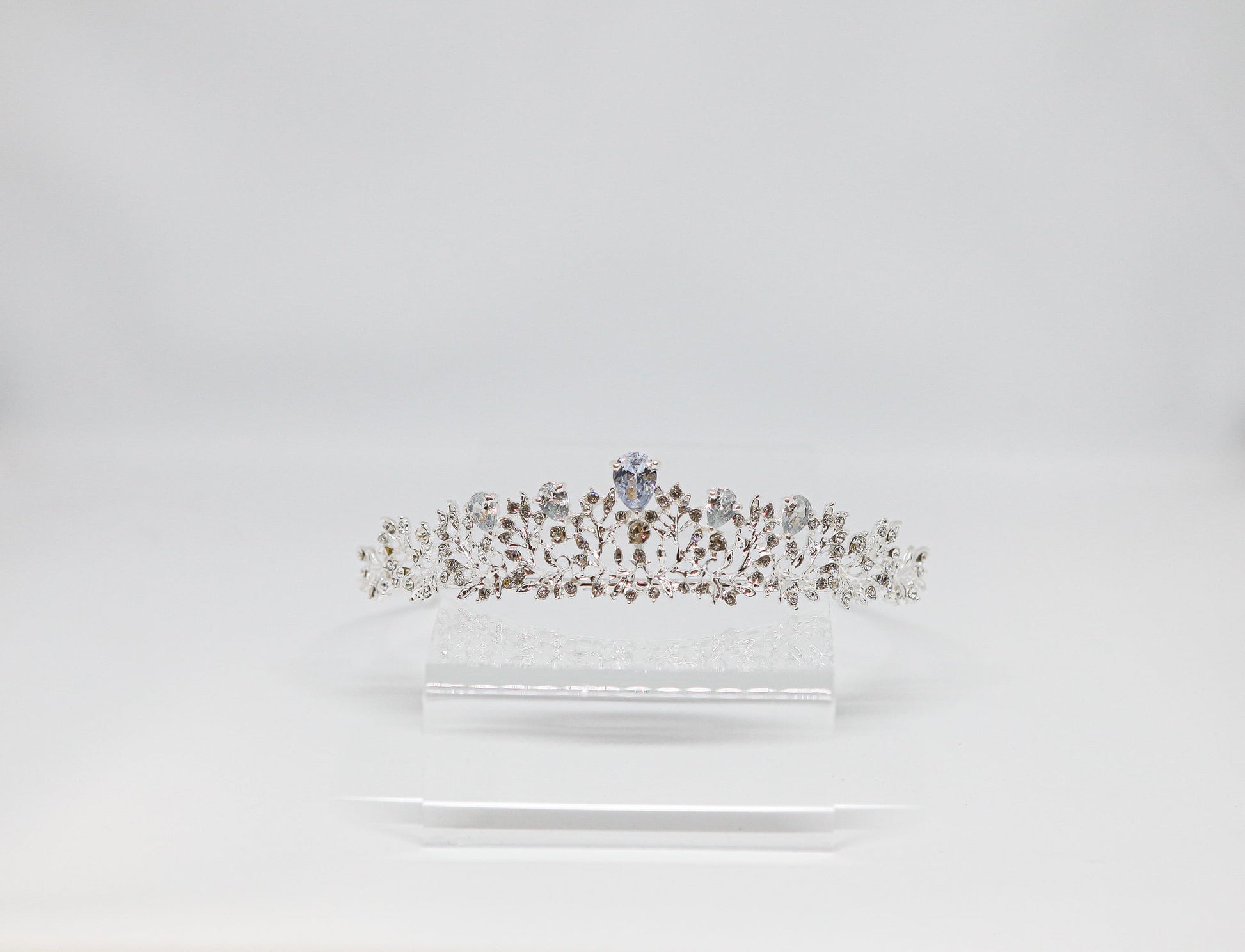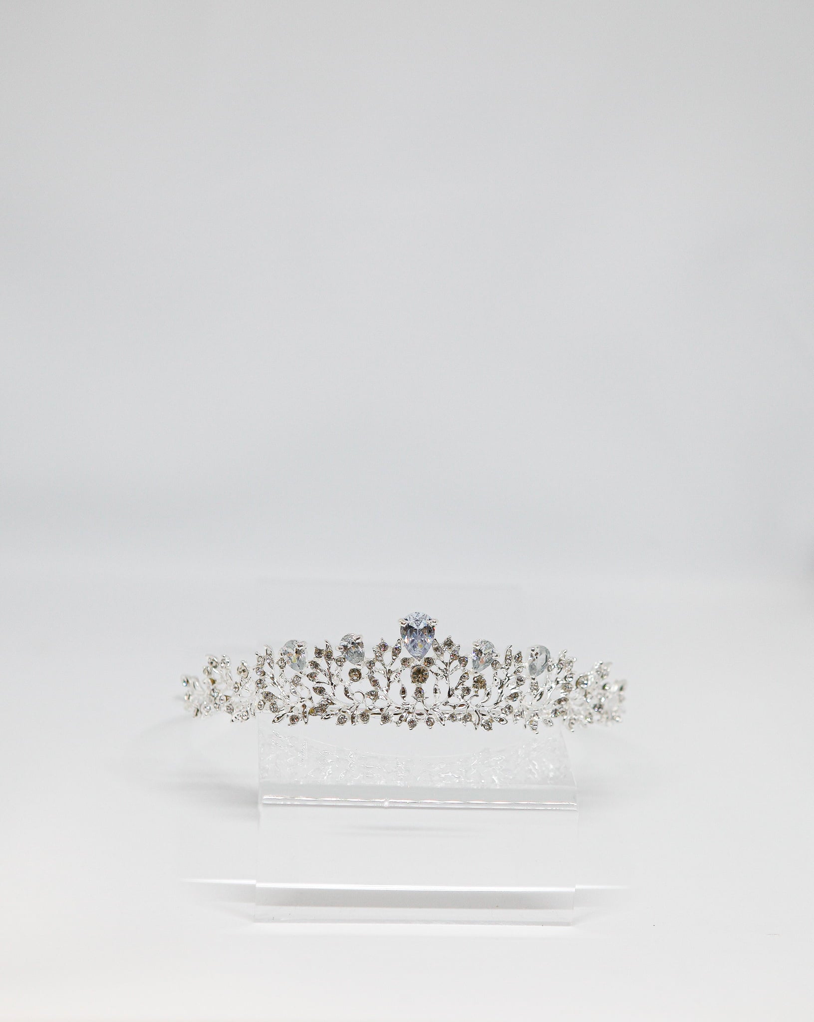 This gorgeous Eliza flower girl tiara is made of silver plated copper. Set in silver, this Eliza tiara features a brilliant clear cubic zircon at the centre that is accented with two loops that allow you to fasten it in your hair with bobby pins design.
