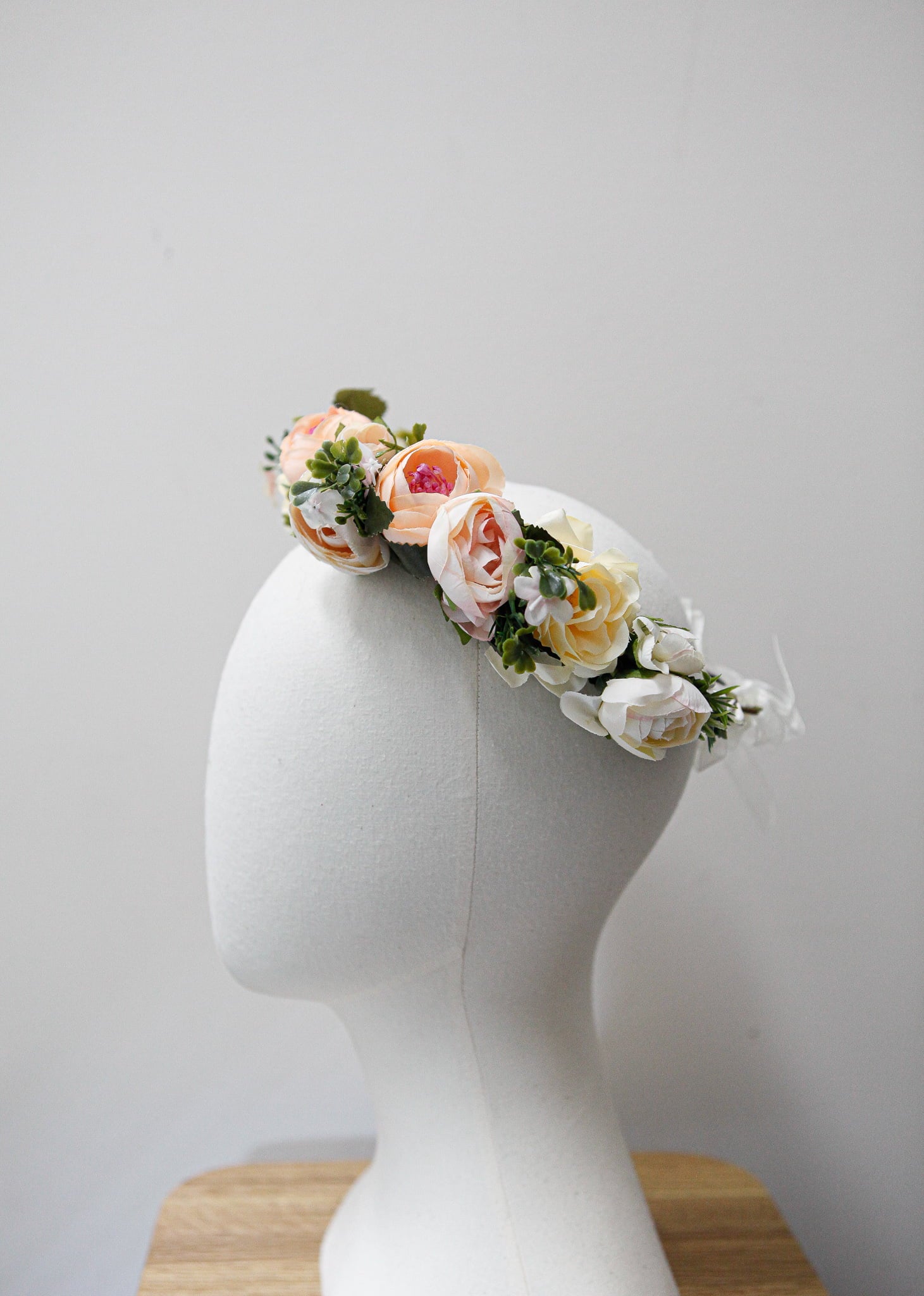 This unique Evelyn flower crown with rich and decorated wreath is a perfect flower crown for any occasions. The flower crown is made of subdued artificial flowers and leaves with bright colours, environmentally friendly and durable. The ribbon can be adjust to size of the flower crown which is suitable for children to adult.