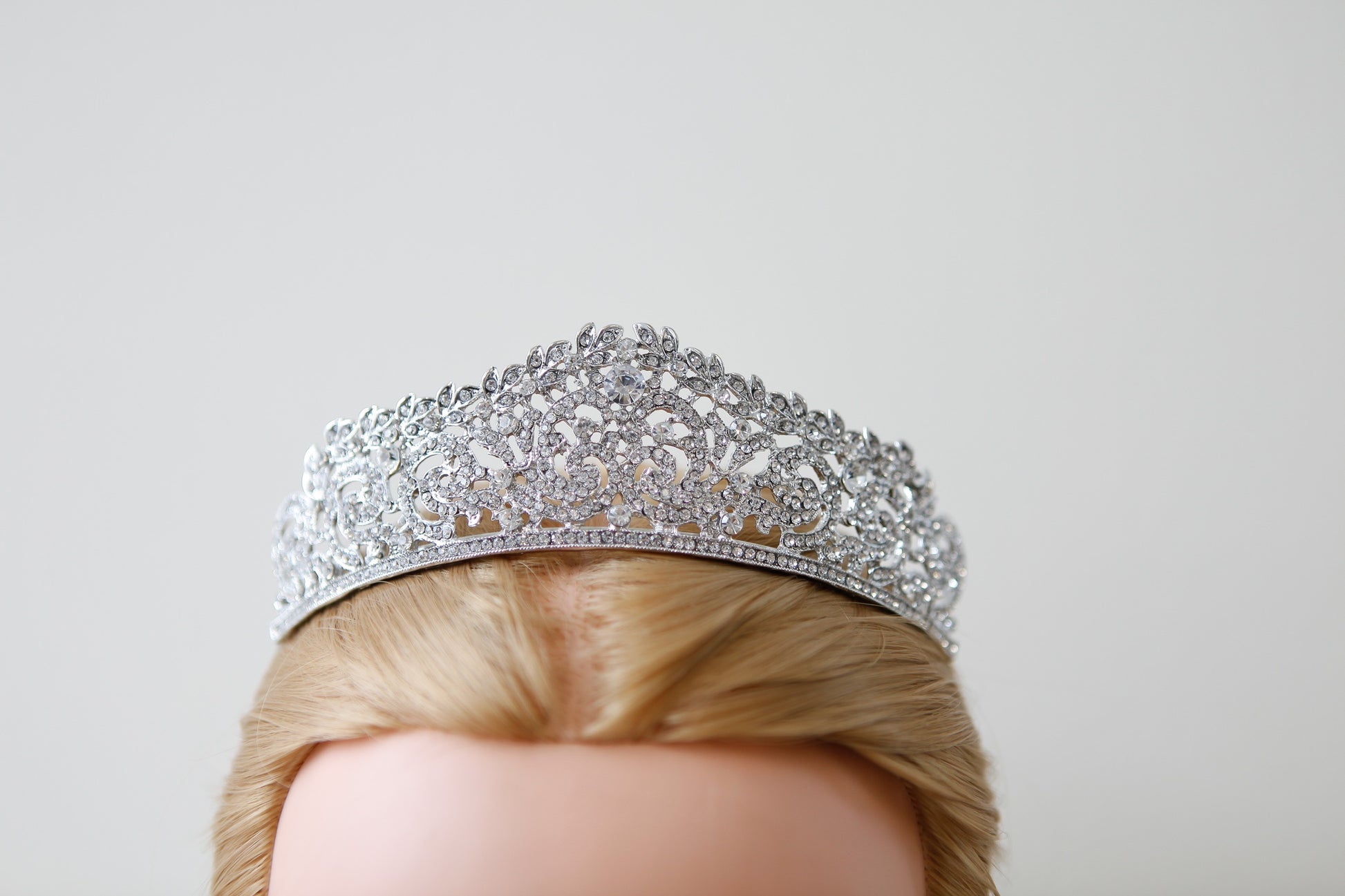 This Jayla tiara measures approximately 19 cms in length and 4.5 cms at its highest point.