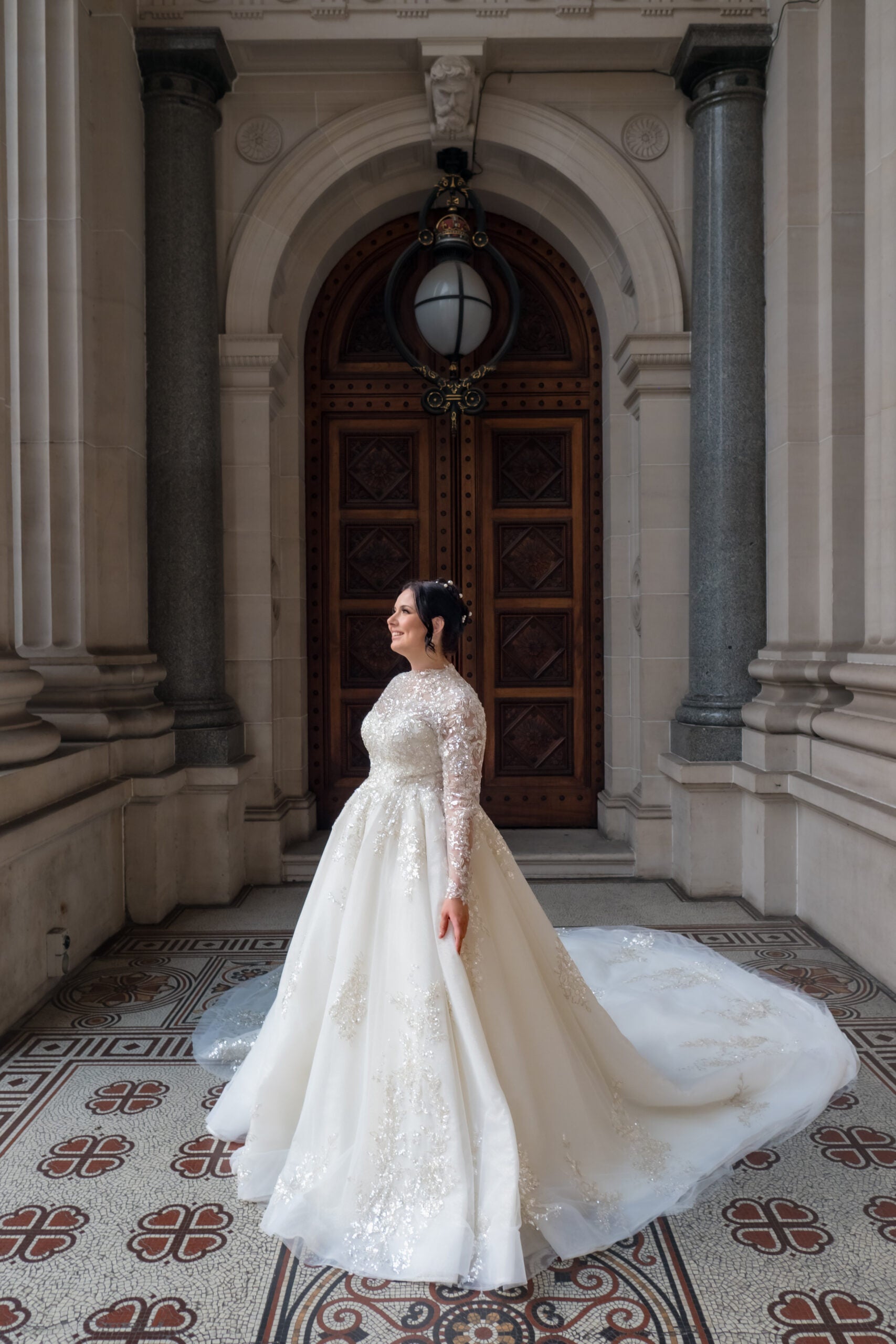 Our wedding dresses are for online viewing only and are available for purchase exclusively in-store at our Deer Park showroom.