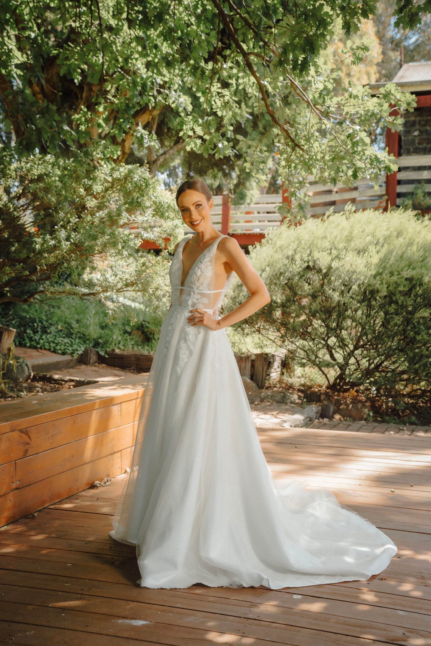 Our wedding dresses are for online viewing only and are available for purchase exclusively in-store at our Deer Park showroom.
