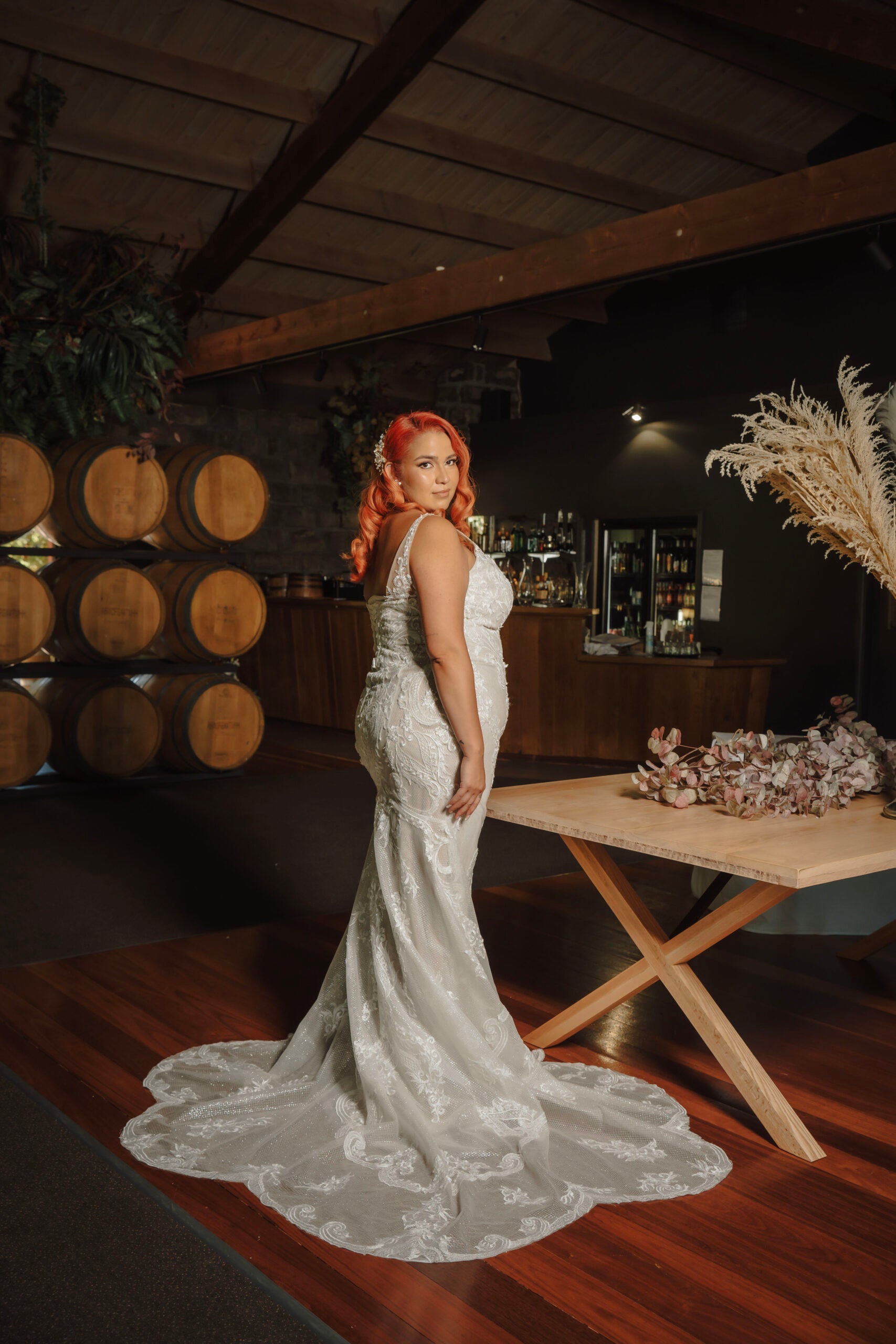 Perfectly suited for a grand vineyard celebration or an elegant indoor ceremony, the 'Rihanna' gown embodies the spirit of a modern fairy tale wedding. This dress ensures a bride feels strikingly beautiful and uniquely herself, promising a wedding day look that’s as unforgettable as the occasion itself.