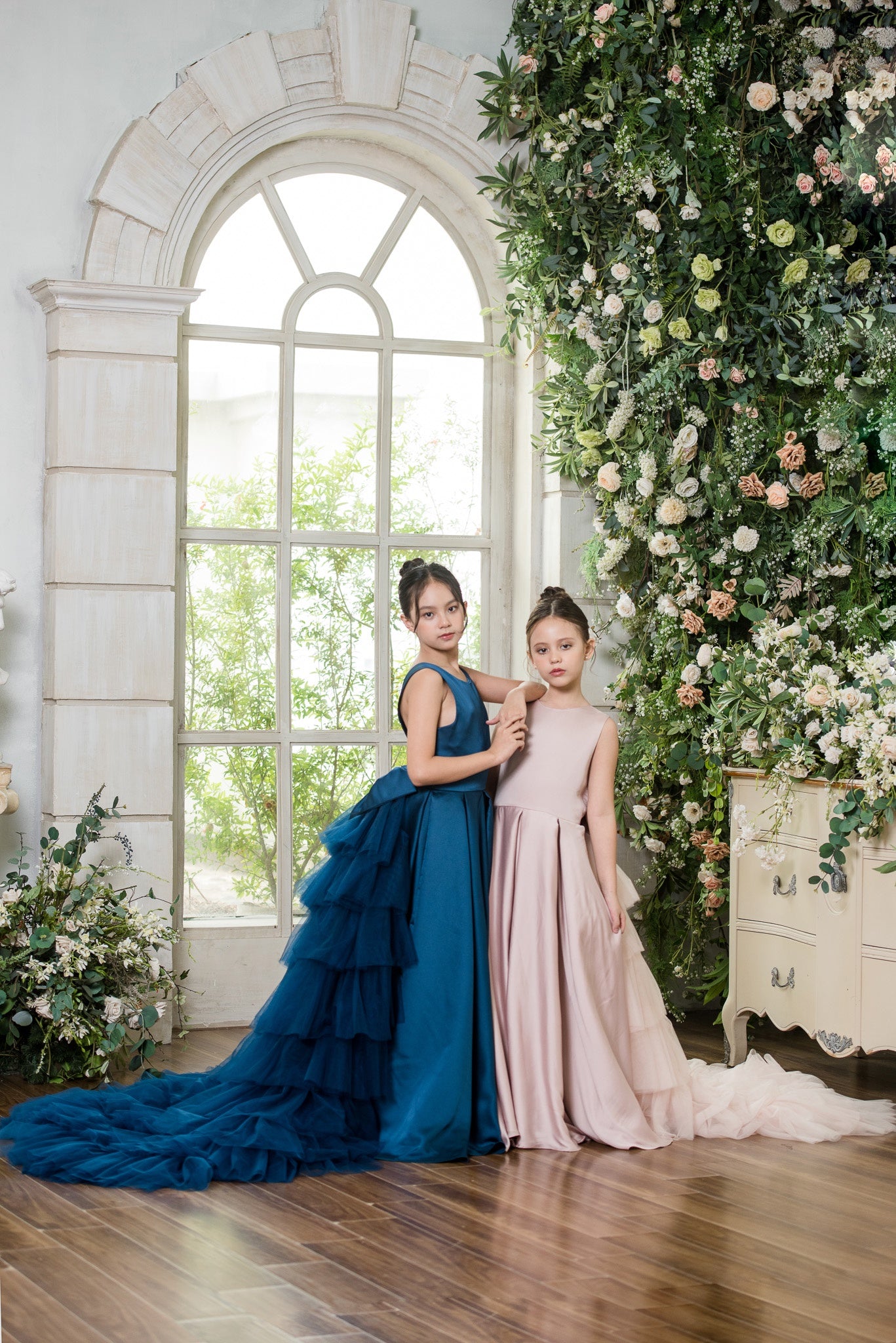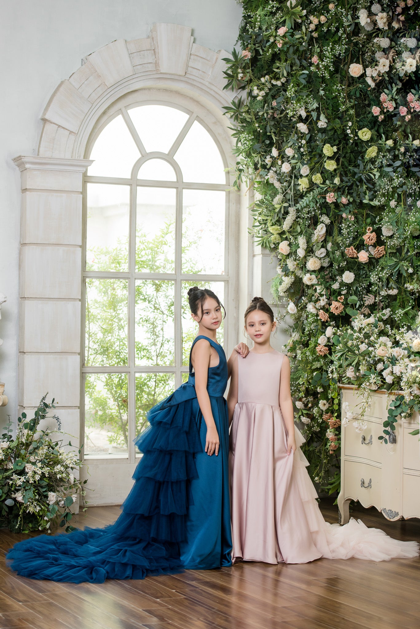 This Zinna flower girl dress is a MAKE TO ORDER dress. Available to try on in store is Blush size 8 and Navy Blue size 10.